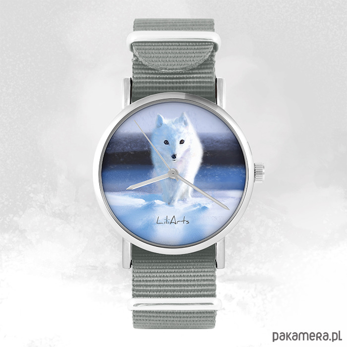 Zegarek - Biały lis - szary, nylonowy