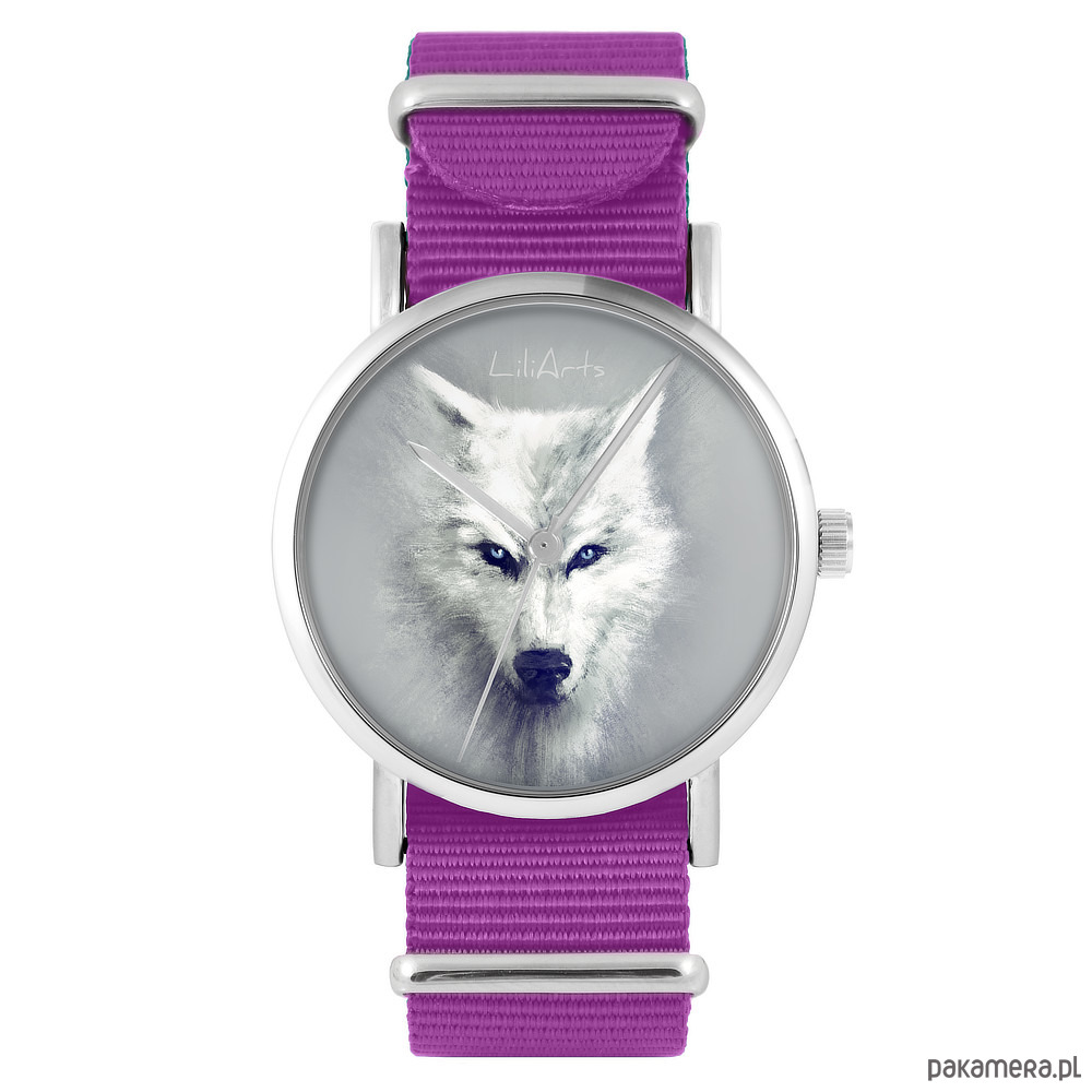 Zegarek - Biały wilk - amarant, nylonowy
