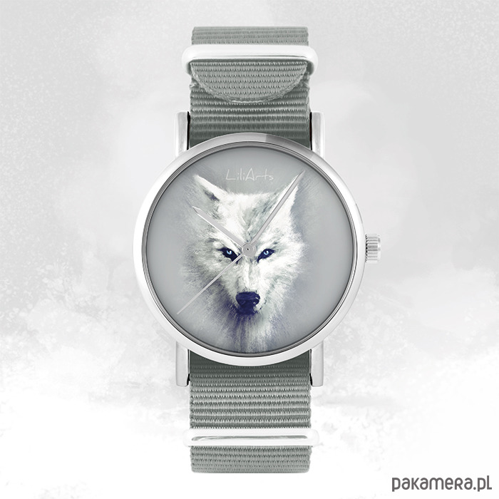 Zegarek - Biały wilk - szary, nylonowy