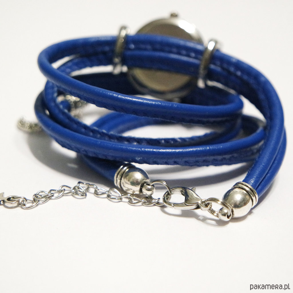 Zegarek umieszczony jest na rzemieniu wykonanym z eko-skóry, o długości ok. 57 cm plus przedłużka.
