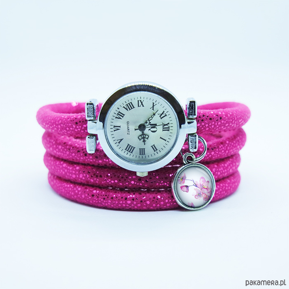 Zegarek, bransoletka - Kwitnąca wiśnia - amarant