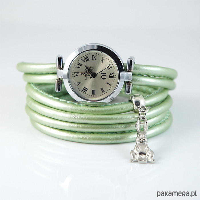 Zegarek umieszczony jest na szytym rzemieniu wykonanym z eko-skóry, o długości ok. 57 cm plus przedłużka.