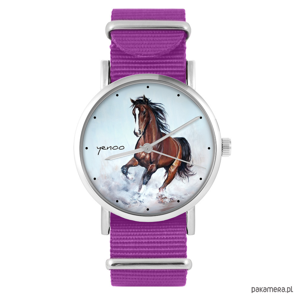 Zegarek - Brązowy koń - amarant, nylonowy