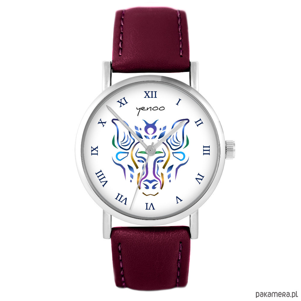 Zegarek - Byk - skórzany, burgund