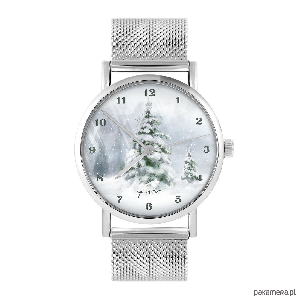 Zegarek - Choinka, zimowy - bransoleta mesh