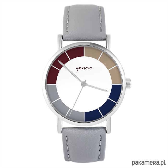 Zegarek - Classic tricolor - szary, skórzany