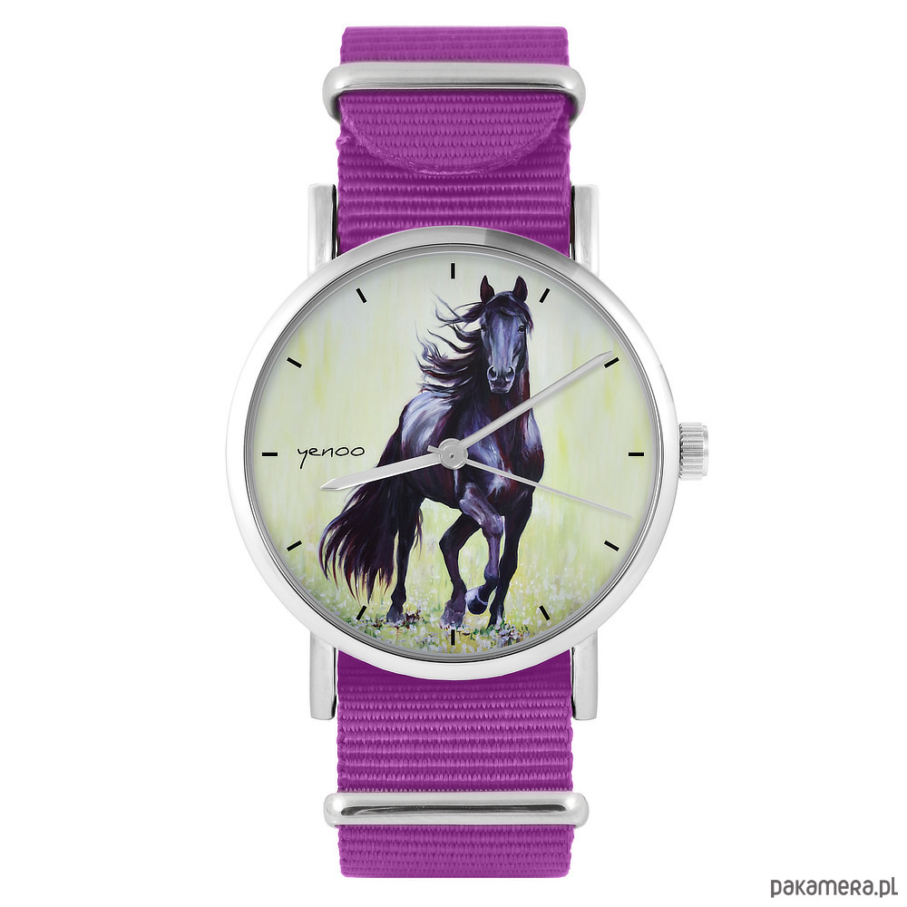 Zegarek - Czarny koń 2 - amarant, nylonowy