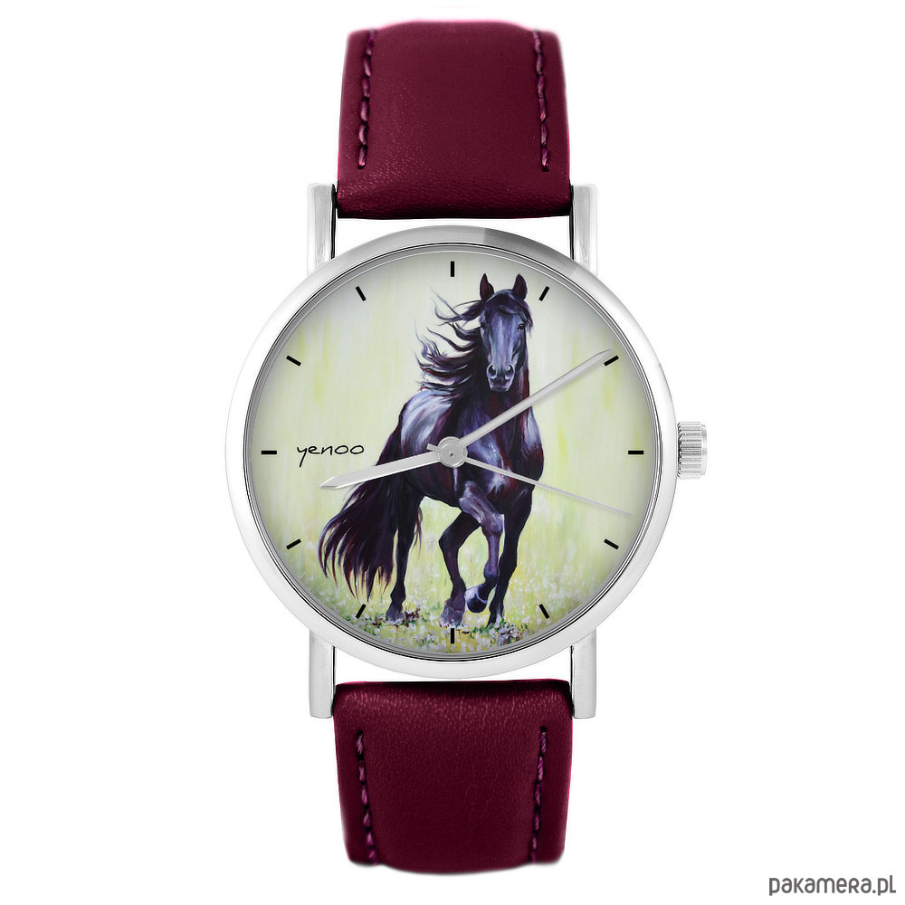 Zegarek - Czarny koń 2 - skórzany, burgund