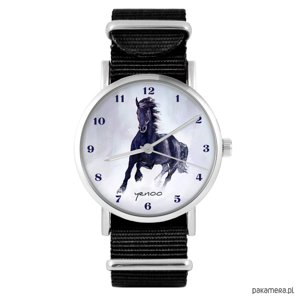Zegarek - Czarny koń cyfry - czarny, nylonowy