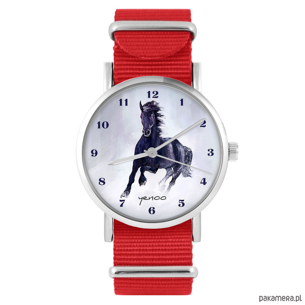 Zegarek - Czarny koń, cyfry - czerwony, nato