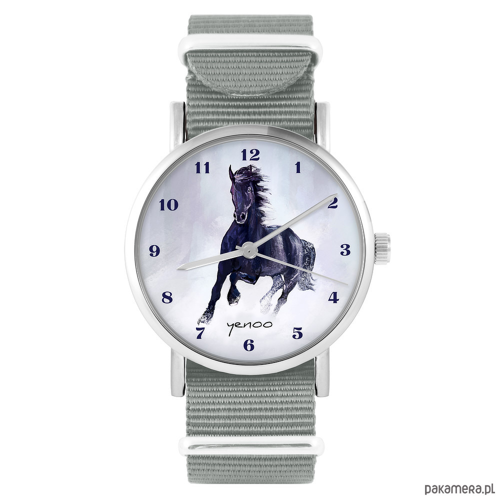 Zegarek - Czarny koń cyfry - szary, nylonowy