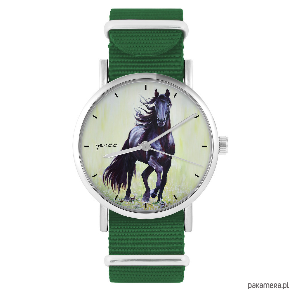 Zegarek - Czarny koń malowany - zielony, nylonowy