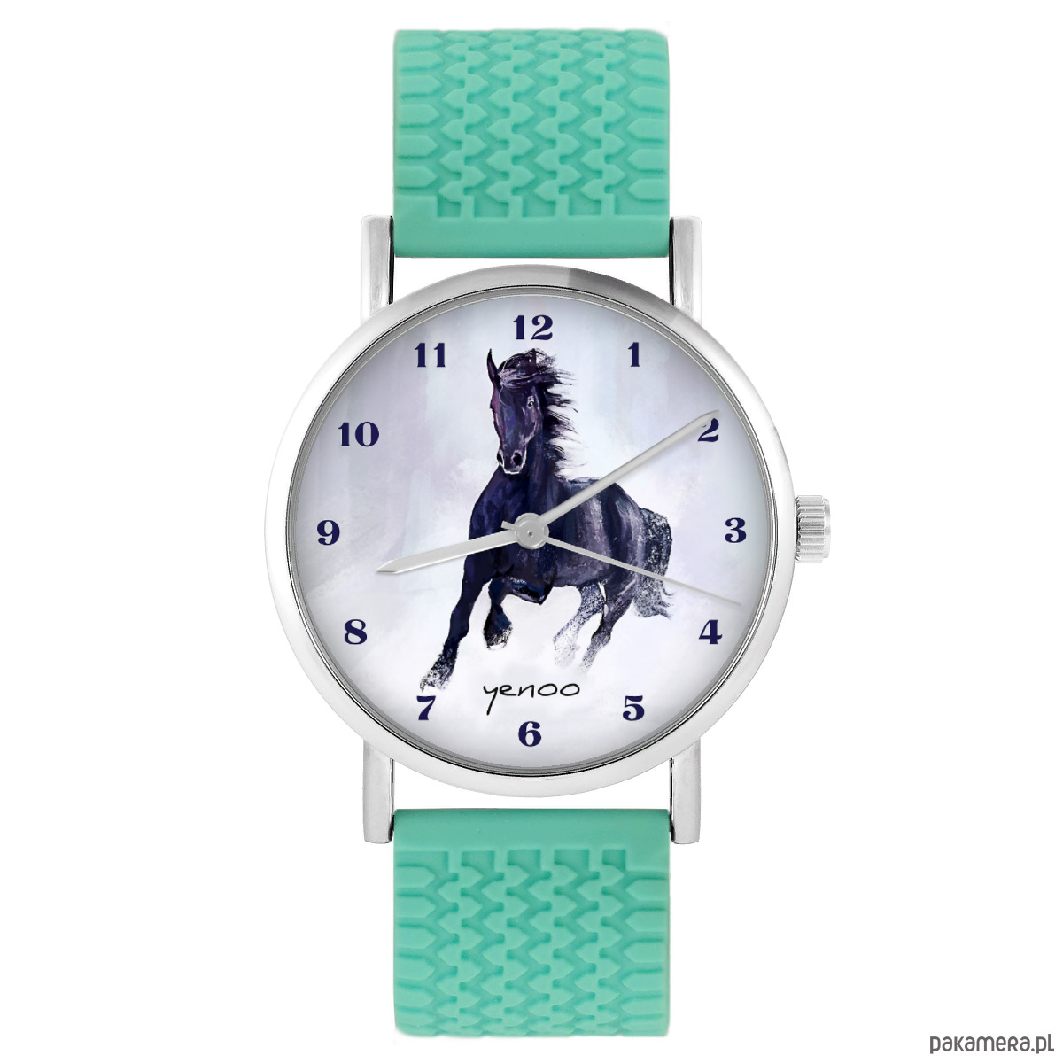 Pasek wykonany jest z silikonu z oryginalnym wytłoczonym wzorem, zapinanie na regulowaną klamrę.