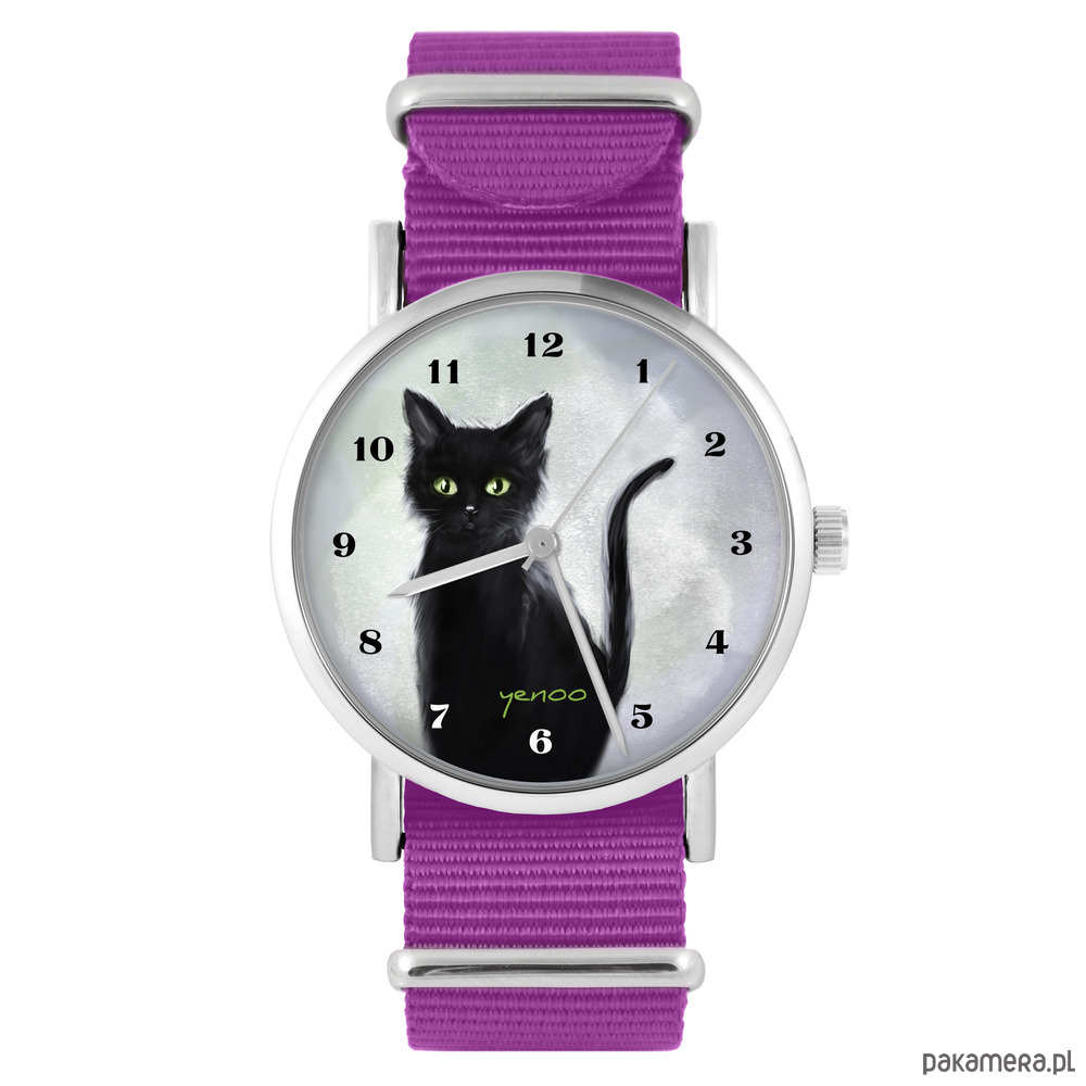 Zegarek - Czarny kot - amarant, nylonowy