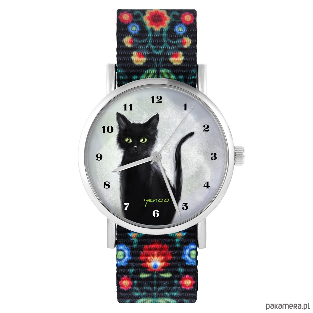Zegarek - Czarny kot - folk czarny, nylonowy
