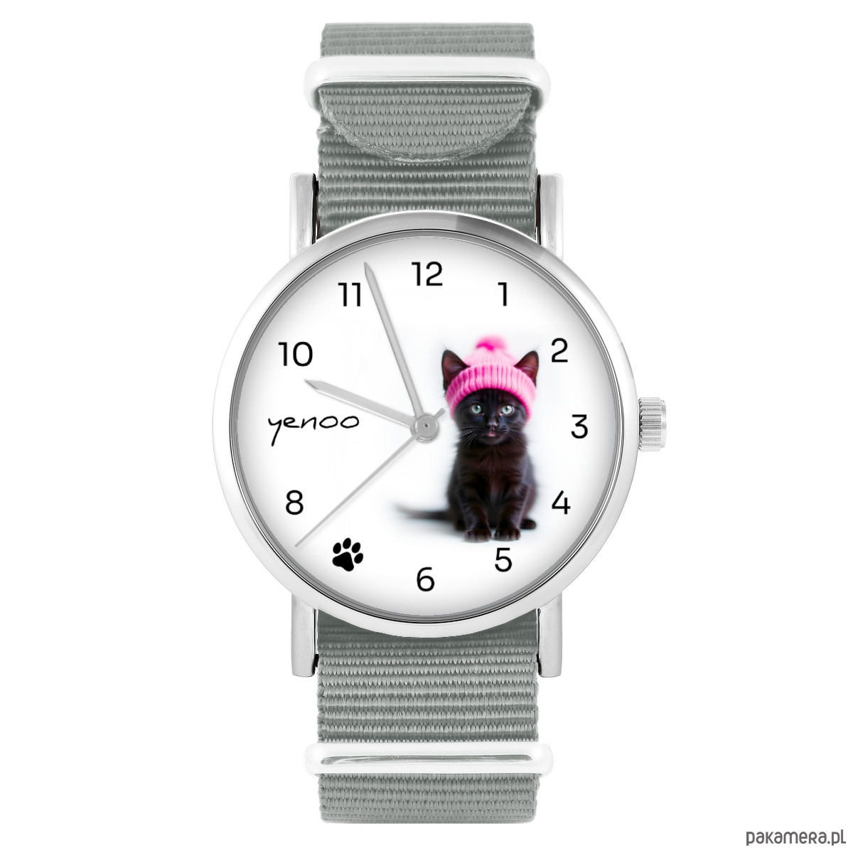 Zegarek - Czarny kotek - szary, nylonowy