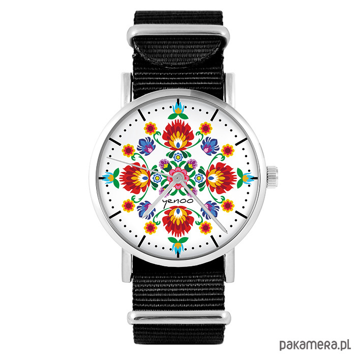 Zegarek - Folkowa mandala - czarny, nylonowy