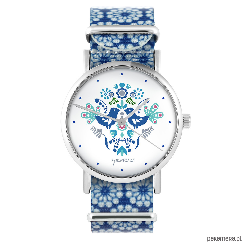 Zegarek - Folkowe ptaszki blue - niebieski, kwiaty