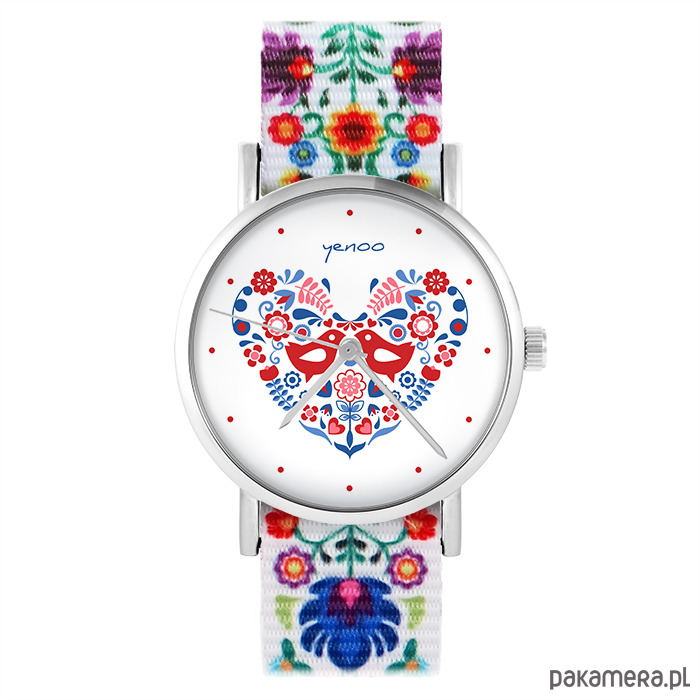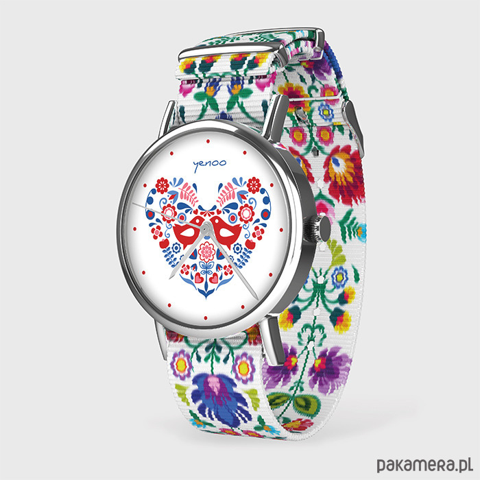 Zegarek - Folkowe ptaszki - folk biały, nato