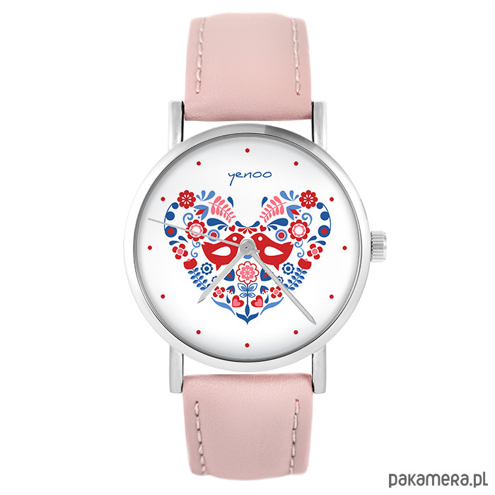Zegarek - Folkowe ptaszki - pudrowy róż