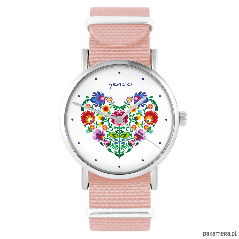 Zegarek - Folkowe serce - brzoskwiniowy róż