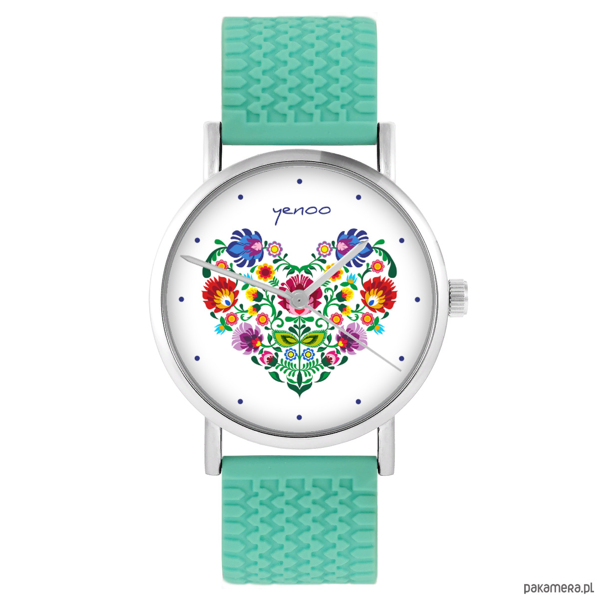 Zegarek - Folkowe serce - silikonowy, turkus