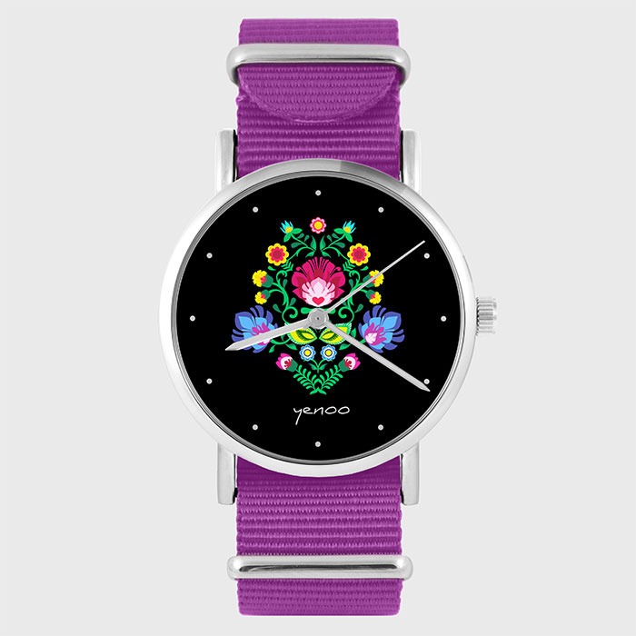 Zegarek - Folkowy, czarny - amarant, nylonowy