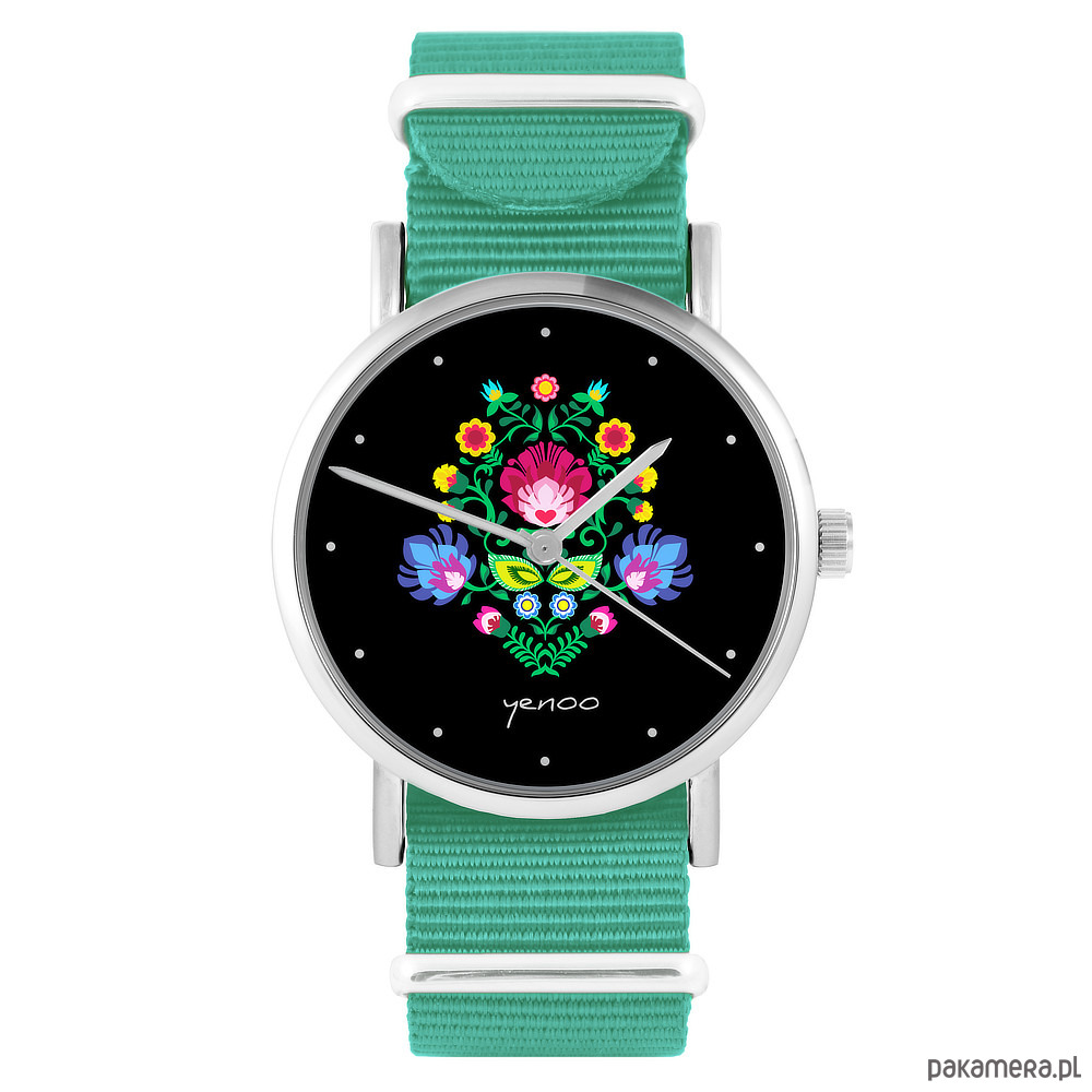 Zegarek - Folkowy czarny - turkusowy, nylonowy