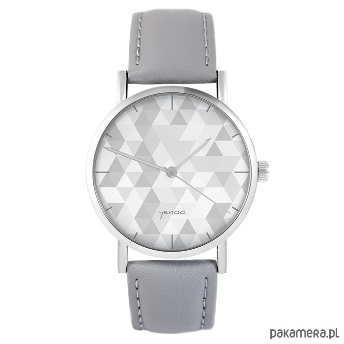 Zegarek - Geometric szary - szary, skórzany