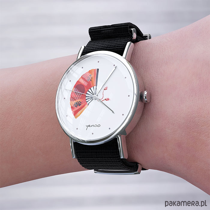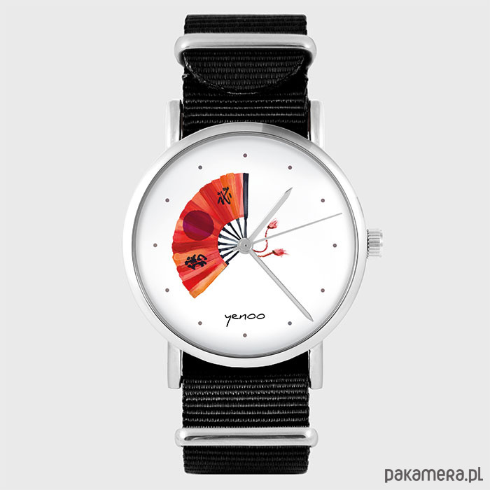 Zegarek - Japoński wachlarz - czarny, nylonowy