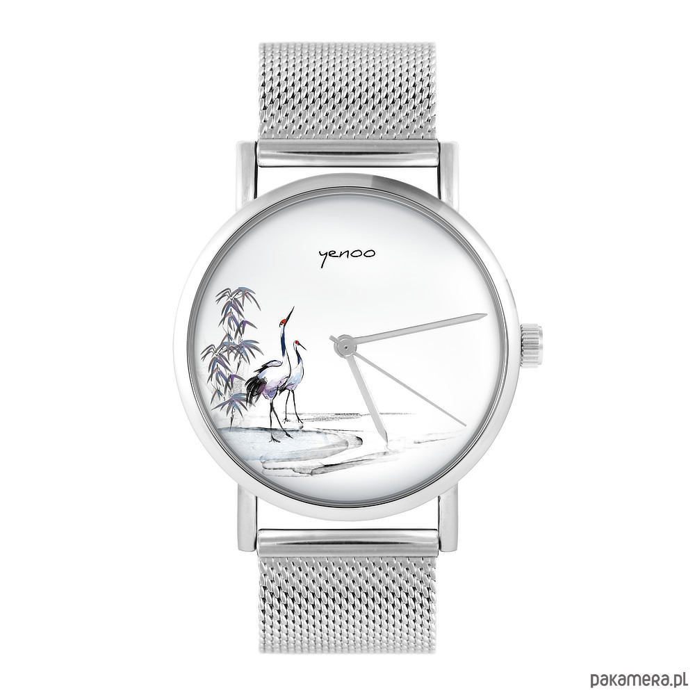Zegarek - Japońskie żurawie - bransoleta mesh