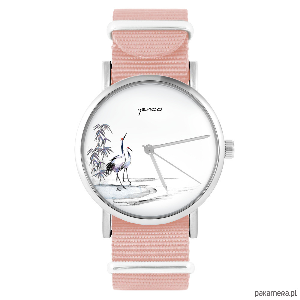 Zegarek - Japońskie żurawie - brzoskwiniowy róż