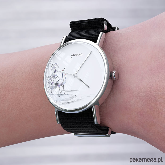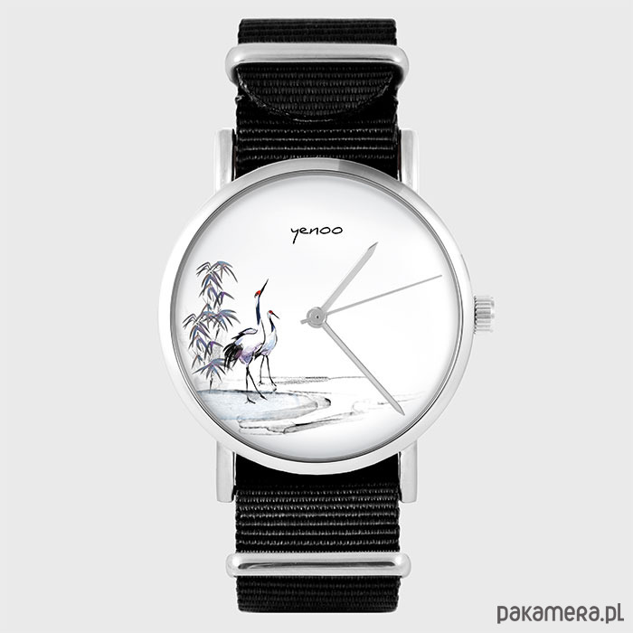 Zegarek - Japońskie żurawie - czarny, nylonowy