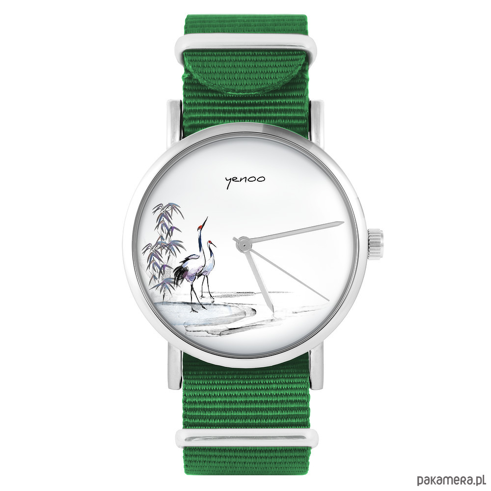 Zegarek - Japońskie żurawie - zielony, nylonowy