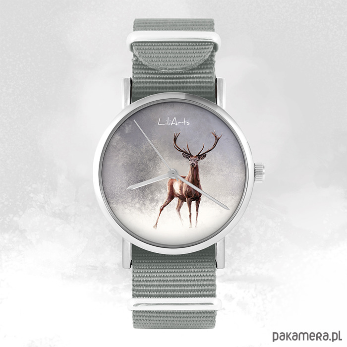 Zegarek - Jeleń 2 - szary, nylonowy
