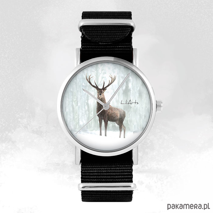 Zegarek - Jeleń 3 - czarny, nylonowy, unisex