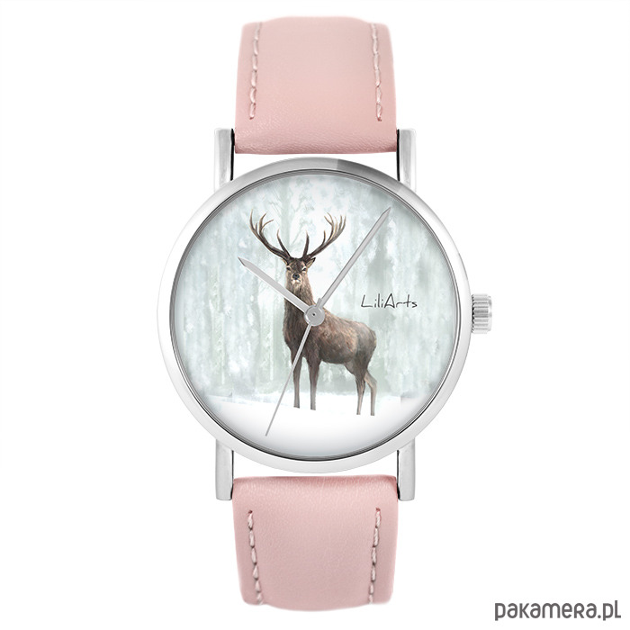 Zegarek - Jeleń 3 - skóra, pudrowy róż