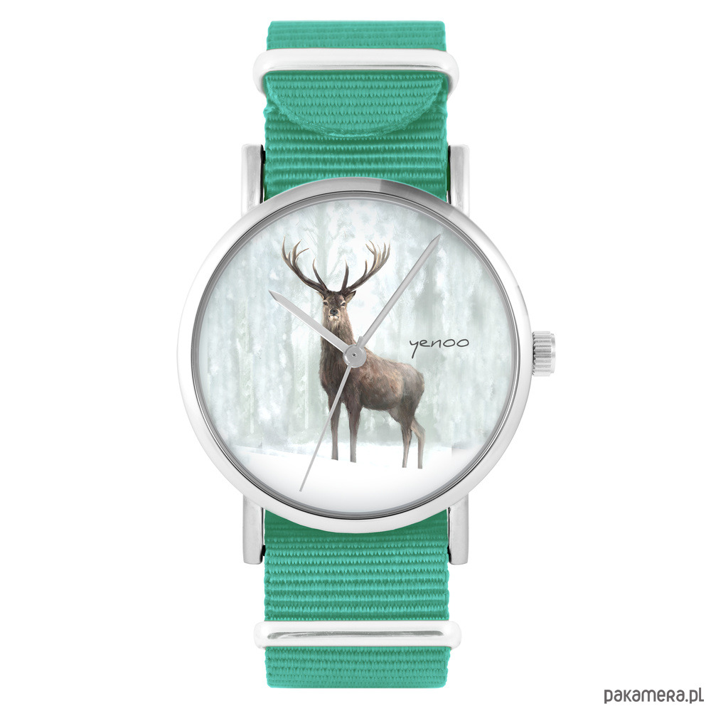 Zegarek - Jeleń 3 - turkusowy, nylonowy