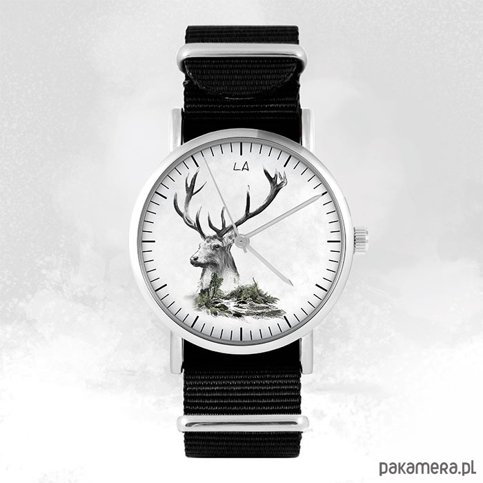 Zegarek - Jeleń - czarny, nylonowy, unisex