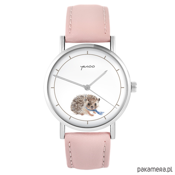 Zegarek - Jeżyk - różowy, skórzany