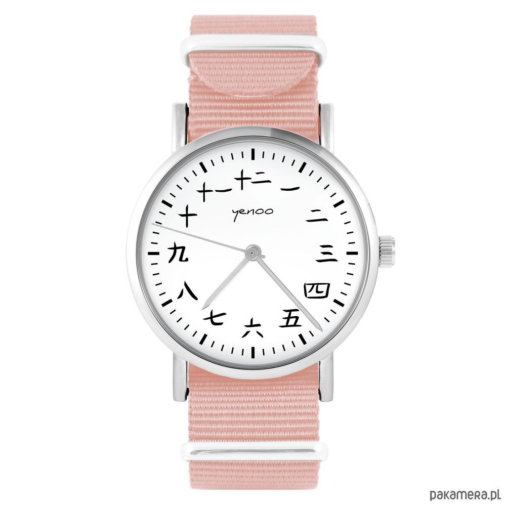 Tarcza zegarka jest utworzona z japońskich znaków logograficznych Kanji, odpowiadających cyfrom od 1 do 12.