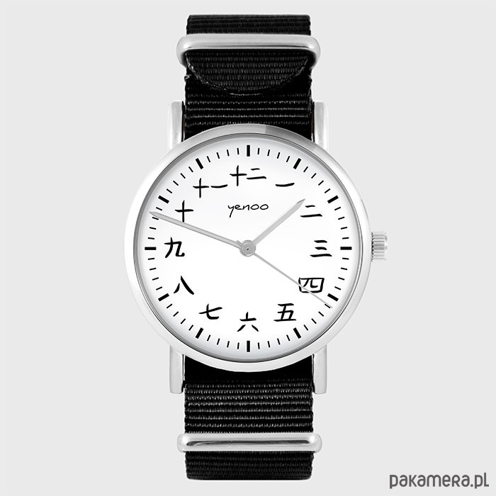 Tarcza zegarka jest utworzona z japońskich znaków logograficznych Kanji, odpowiadających cyfrom od 1 do 12.