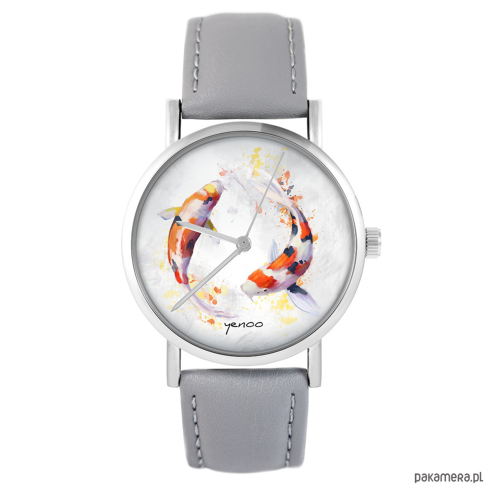 Zegarek - Karpie Koi - skóra, szary