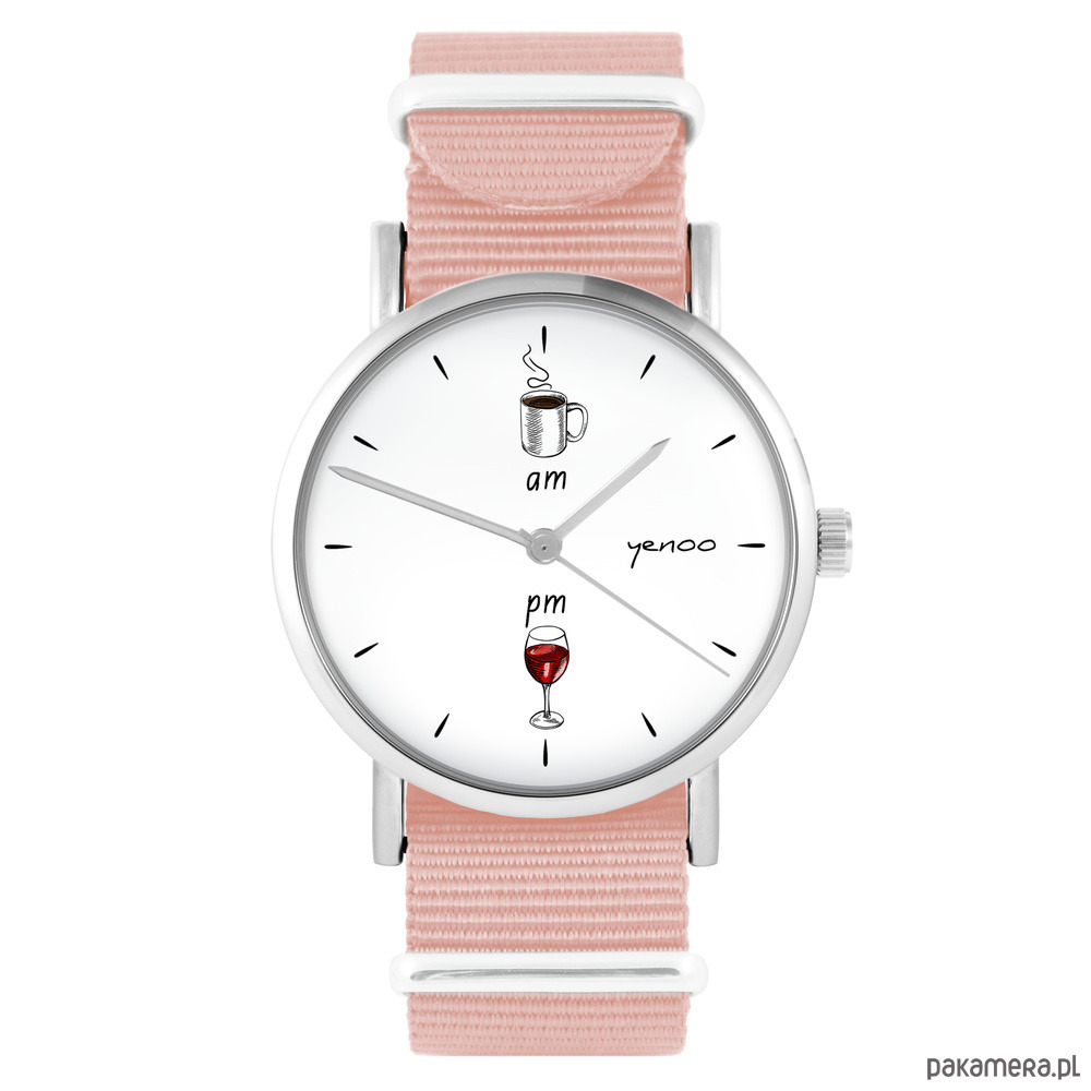 Zegarek - Kawa i wino - brzoskwiniowy róż