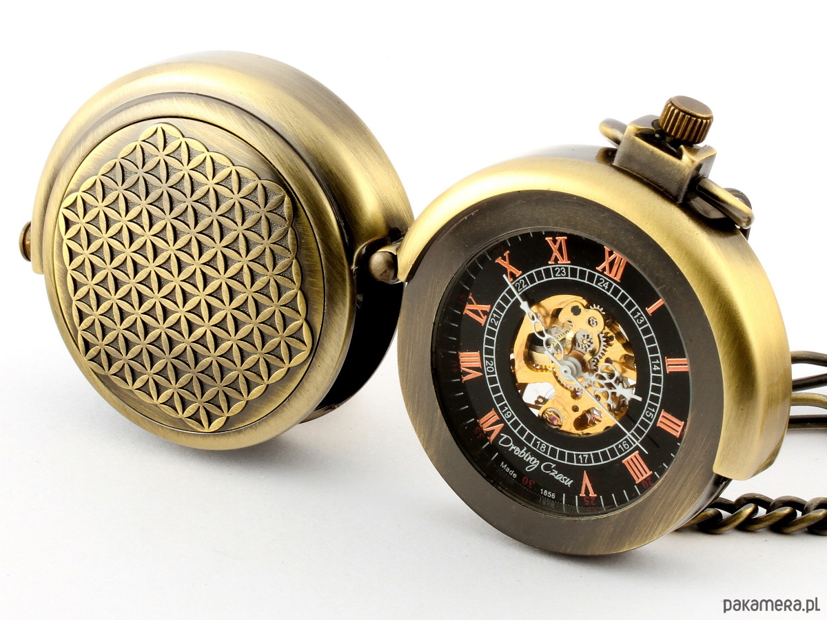 Jeśli szukasz oryginalnego zegarka kieszonkowego - znalazłeś właśnie unikalny egzemplarz. W stu procentach steampunkowa forma tego unikalnego zegarka mechanicznego odzwierciedla jego zdecydowanie męski charakter. Binocle - gdyż taką nazwę nosi ten model - cechujący się całkowicie unikatowym zamknięciem - jest zegarkiem wyróżniającym go spośród innych Drobin Czasu. Obudowa wygrawerowana została na kształt Kwiatu Życia. Czarna tarcza - znana już z Elegancji Czerni I - dodaje zegarkowi zdecydowanego smaku i wyrafinowania. Całość podkreśla dodatkowo metaliczny dźwięk serca zegarka.Garść danych, które mogą dodatkowo wpłynąć na Twoją decyzję:- Średnica zegarka: 4,5 cm- Grubość zegarka: 1,5 cm- Materiał zawieszki: Brąz- Materiał obudowy: Wysokiej jakości brąz połączony ze stalą uszlachetnioną- Długość zawieszki: 35,0 cm- Mechanizm: ręcznie nakręcany