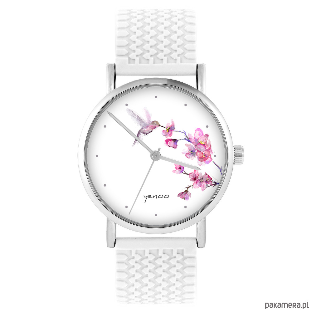 Pasek wykonany jest z silikonu z oryginalnym wytłoczonym wzorem, zapinanie na regulowaną klamrę.