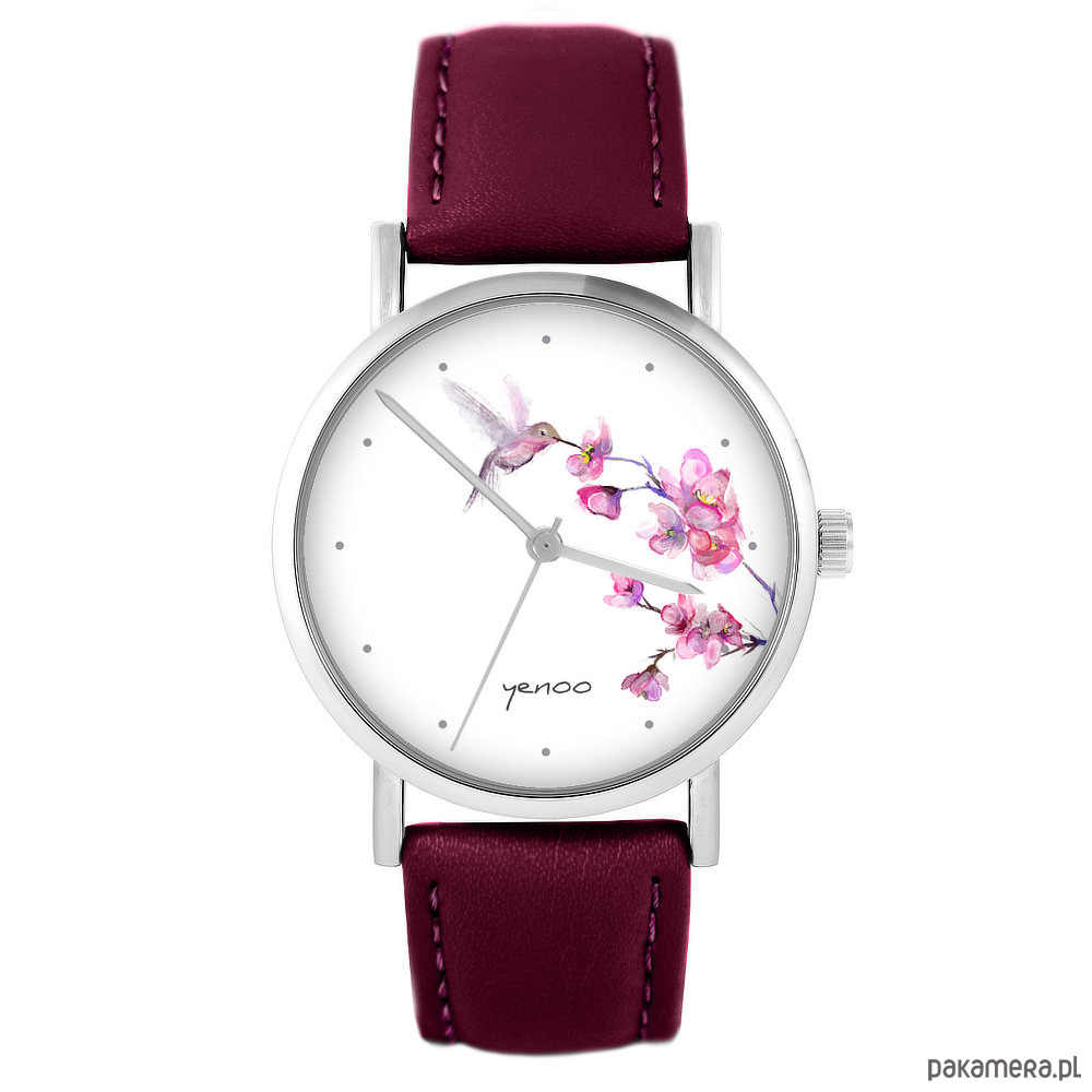 Zegarek - Koliber - skórzany, burgund