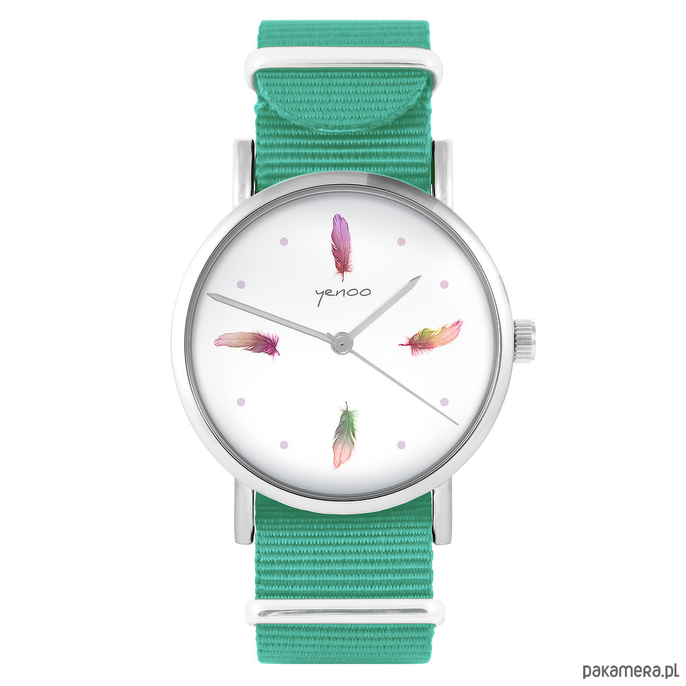 Zegarek - Kolorowe piórka - turkusowy, nylonowy