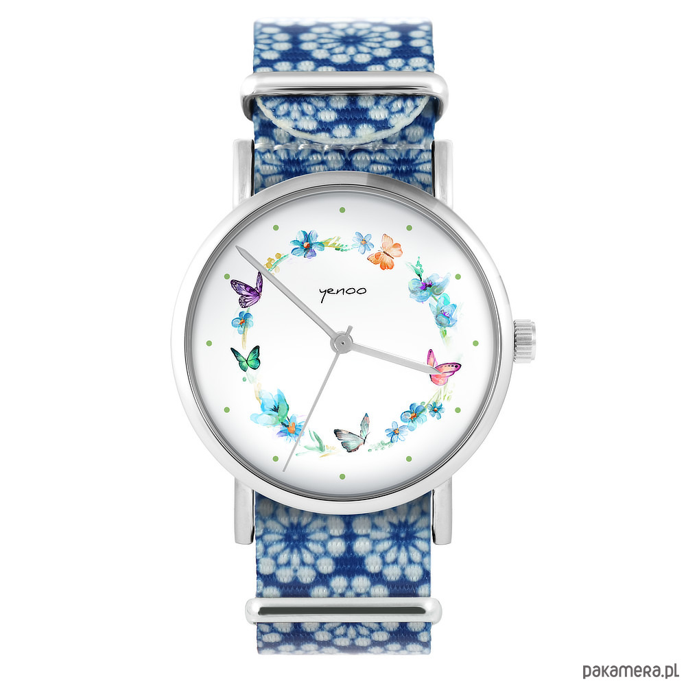 Zegarek - Kolorowy wianek - niebieski, kwiaty
