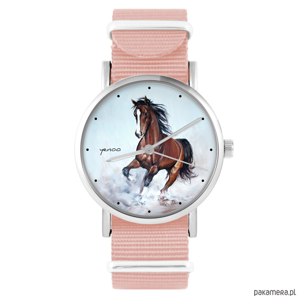 Zegarek - Koń brązowy - brzoskwiniowy róż